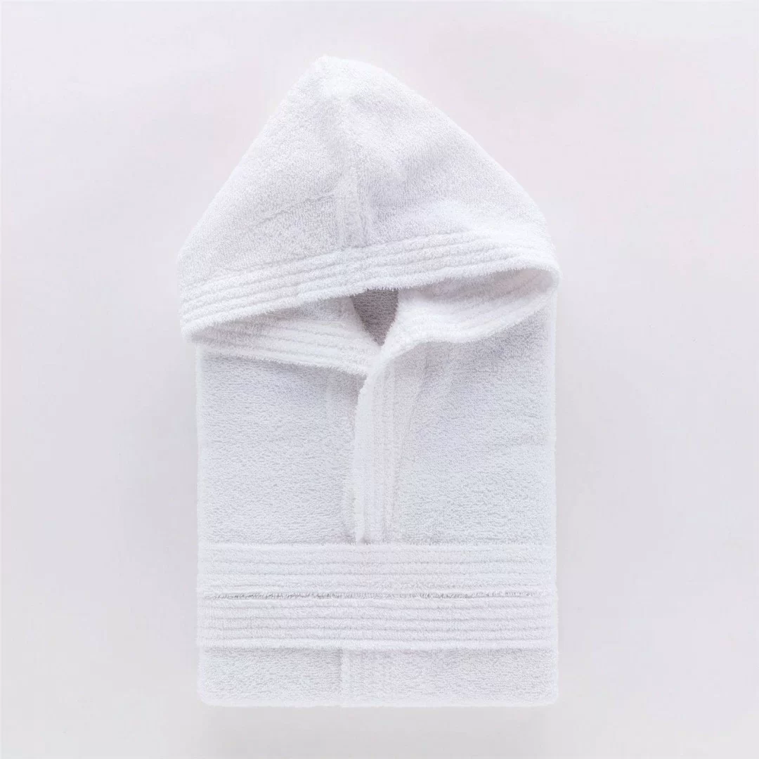 Questo capo presenta un design elegante e senza tempo, arricchito da un cappuccio che aggiunge un tocco di praticità e charme. La sua tonalità unita dona un aspetto raffinato e versatile, perfetto per coccolarsi dopo una rilassante doccia o per trascorrere piacevoli momenti di relax in casa.