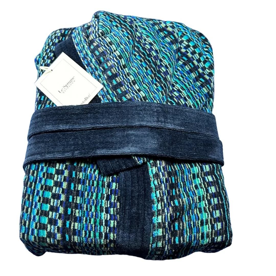Accappatoio Spugna LineaBlu art. Miss Luxury 450gr/mq. L'accappatoio Linea Blu modello "Miss Luxury" è un prodotto di alta qualità realizzato interamente in spugna di cotone al 100% con un peso di 450 gr/mq. Questo peso indica che il tessuto è particolarmente assorbente e morbido, ideale per avvolgerti in comfort dopo il bagno o la doccia.