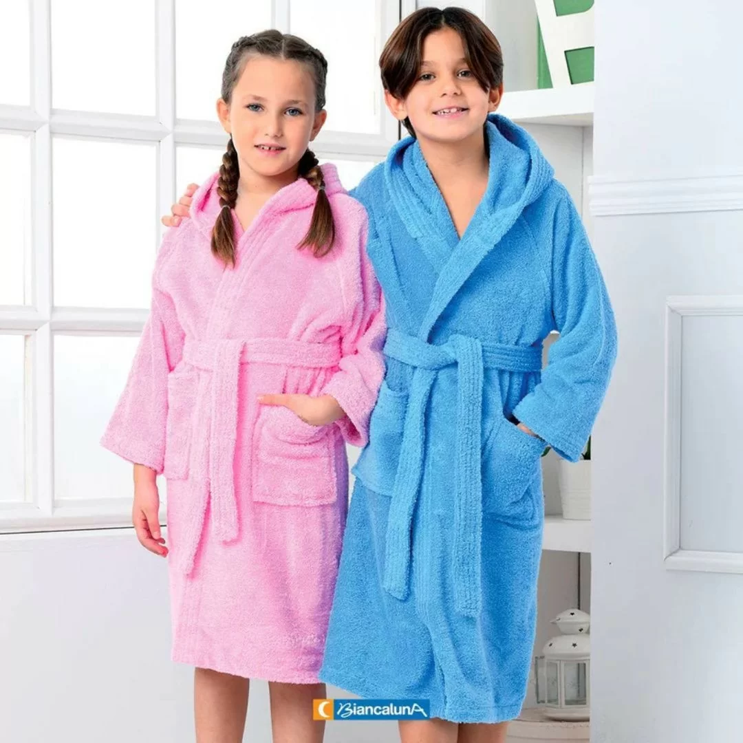 Un accappatoio junior colorato, resistente e confortevole, perfetto per accompagnare ogni momento di relax con stile e qualità.