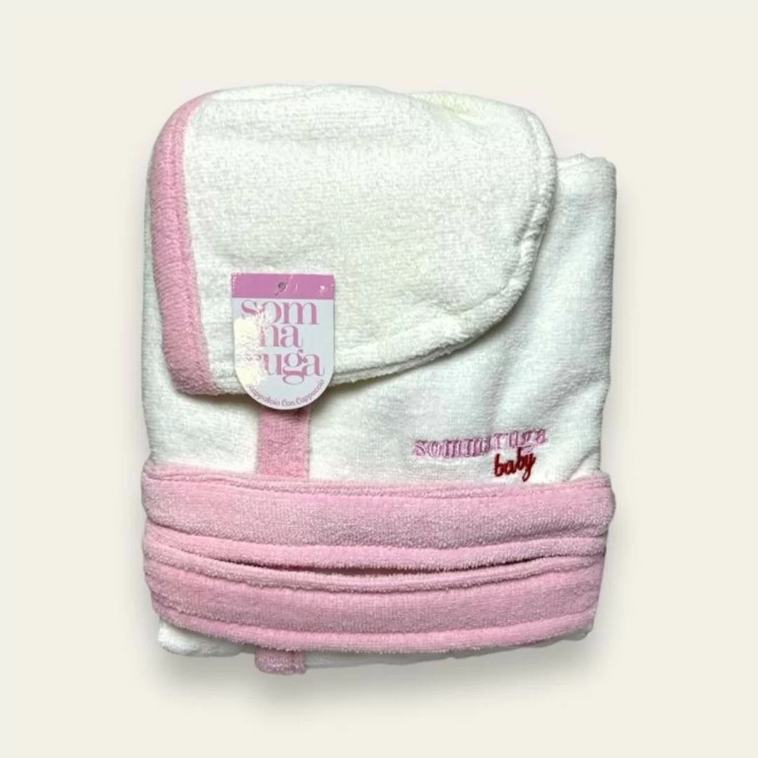 Accappatoio Bambina Spugna Sommaruga art. S100/M 300gr/mq. L'accappatoio Baby Sommaruga art. S100/M è un delicato capo di biancheria per bambini realizzato con cura e attenzione nei dettagli. Realizzato in spugna di cotone di alta qualità, questo accappatoio offre un comfort lussuoso per la pelle delicata del tuo piccolo.
