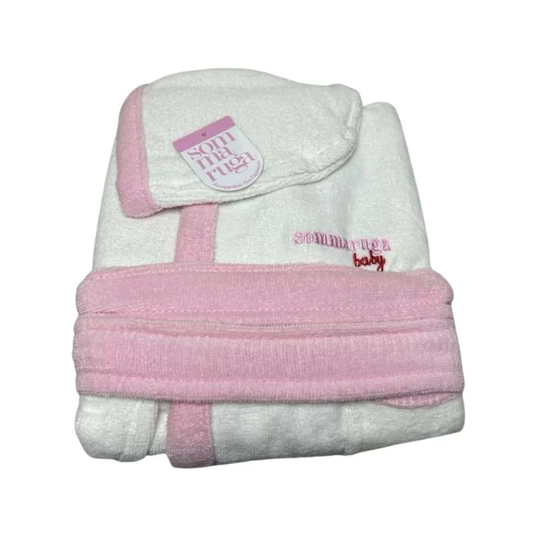 Accappatoio Bambina Spugna Sommaruga art. S100/M 300gr/mq Rosa e Bianco