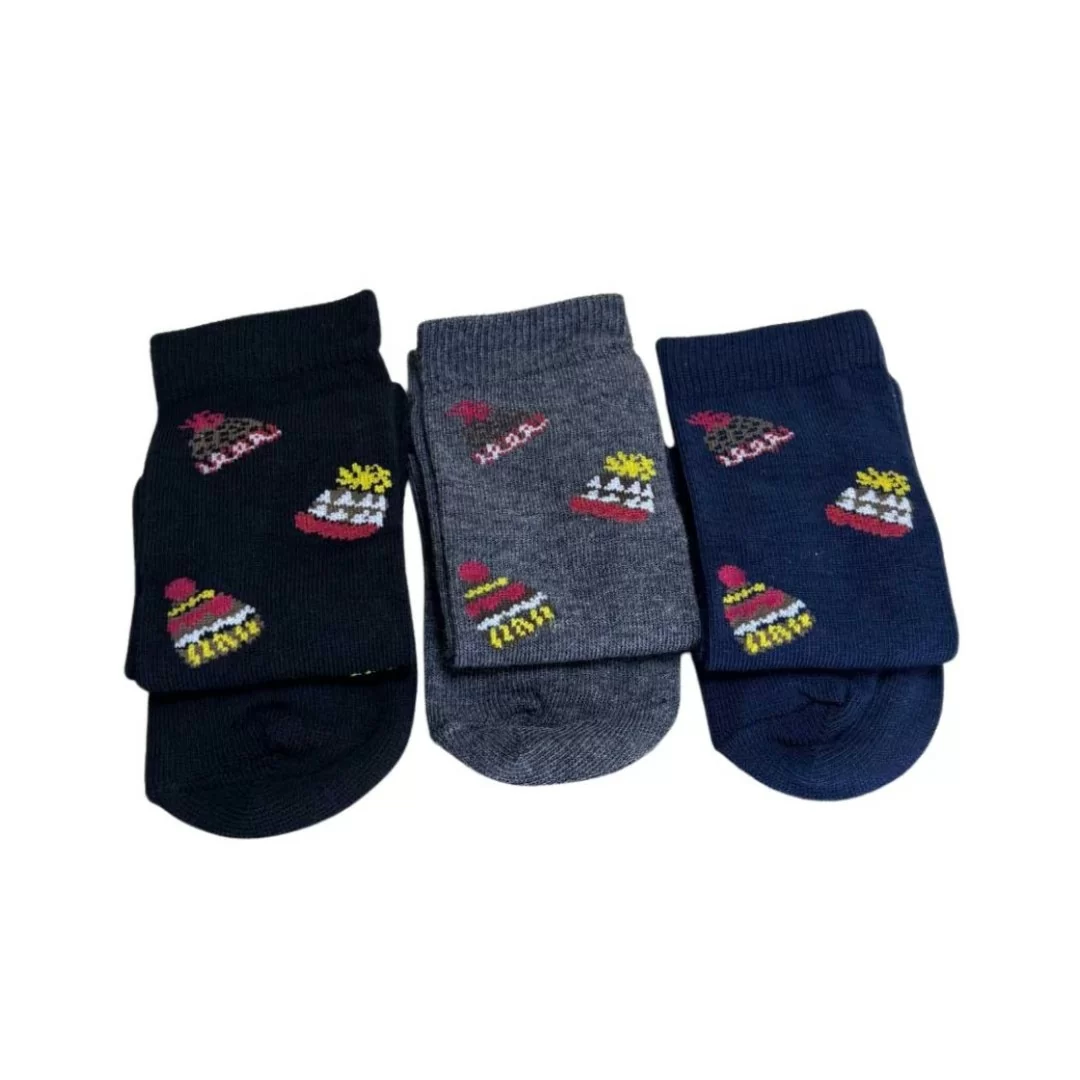 Calzini Bambino First Love art. 36BLF Tris Caldo Cotone. Tris di Calzini da Bambino "First Love" Art. 36 BLF in Caldo Cotone – Fantasia Cappellino, Colori Assortiti