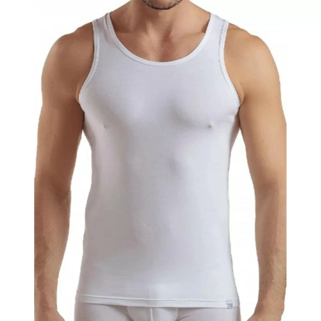 Canotta Da Uomo Enrico Coveri art. ET1002 set 3 pezzi. Rifinisci il tuo guardaroba con il comfort definitivo e lo stile senza tempo del nostro set di 3 Canotte Intime Uomo in Morbido Cotone Bielastico ET 1002. Realizzate con un lussuoso mix di 93% cotone e 7% elastan, queste canotte offrono un'esperienza di indossamento senza pari. La loro qualità superlativa e il confort eccezionale le rendono la scelta perfetta per il tuo tempo libero, garantendo un comfort ottimale durante le tue attività quotidiane. La struttura del tessuto non solo offre una sensazione soffice e traspirante sulla pelle, ma assicura anche una resistenza eccezionale ai lavaggi, mantenendo le canotte fresche e in forma lavaggio dopo lavaggio. Completa con uno stile senza tempo e una spalla larga impreziosita dal logo Enrico Coveri, questo set di canotte è un essenziale da avere nel tuo guardaroba maschile
