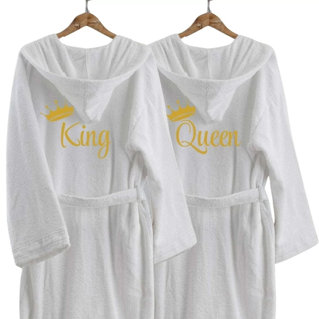 Design: Bianco puro con ricami esclusivi "King" e "Queen"