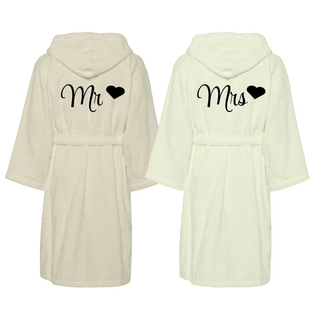 Il set accappatoi bicolore Mr & Mrs è la scelta ideale per un dono speciale: perfetto per coppie appena sposate, fidanzati o per chiunque voglia aggiungere un tocco di lusso e comfort alla propria routine quotidiana. Grazie al loro design elegante e alla qualità superiore, rappresentano un must-have per ogni bagno raffinato.