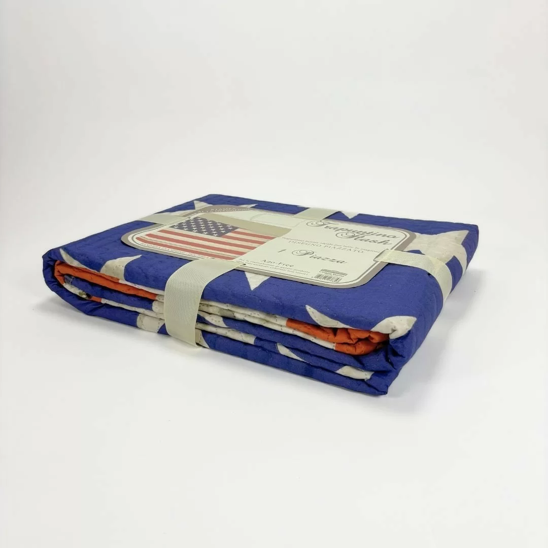 Copriletto Trapuntato Singolo Cotton House art. Flash BOUT0064. Trapuntino Copriletto Singolo 170x250cm Cotton House art. Flash BOUT0064 con Stampa Digitale Bandiera USA Spring