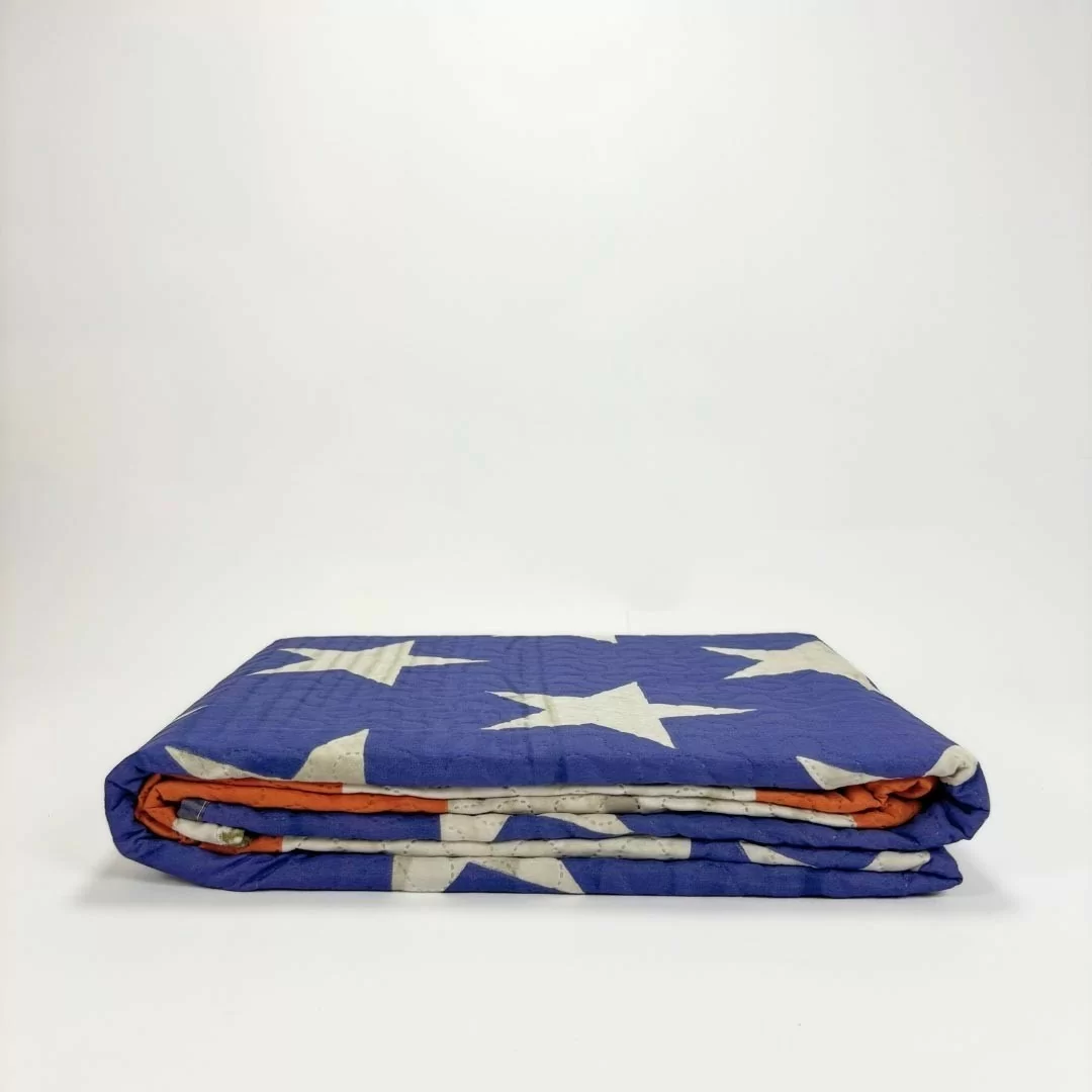 Realizzato con la massima cura e attenzione ai dettagli, il trapuntino presenta una stampa digitale ad alta risoluzione che raffigura la bandiera degli Stati Uniti d'America. Questa stampa non solo esalta i vivaci colori rosso, bianco e blu, ma cattura anche la maestosità e l'orgoglio della bandiera americana, rendendola un elemento distintivo e accattivante nella tua stanza.