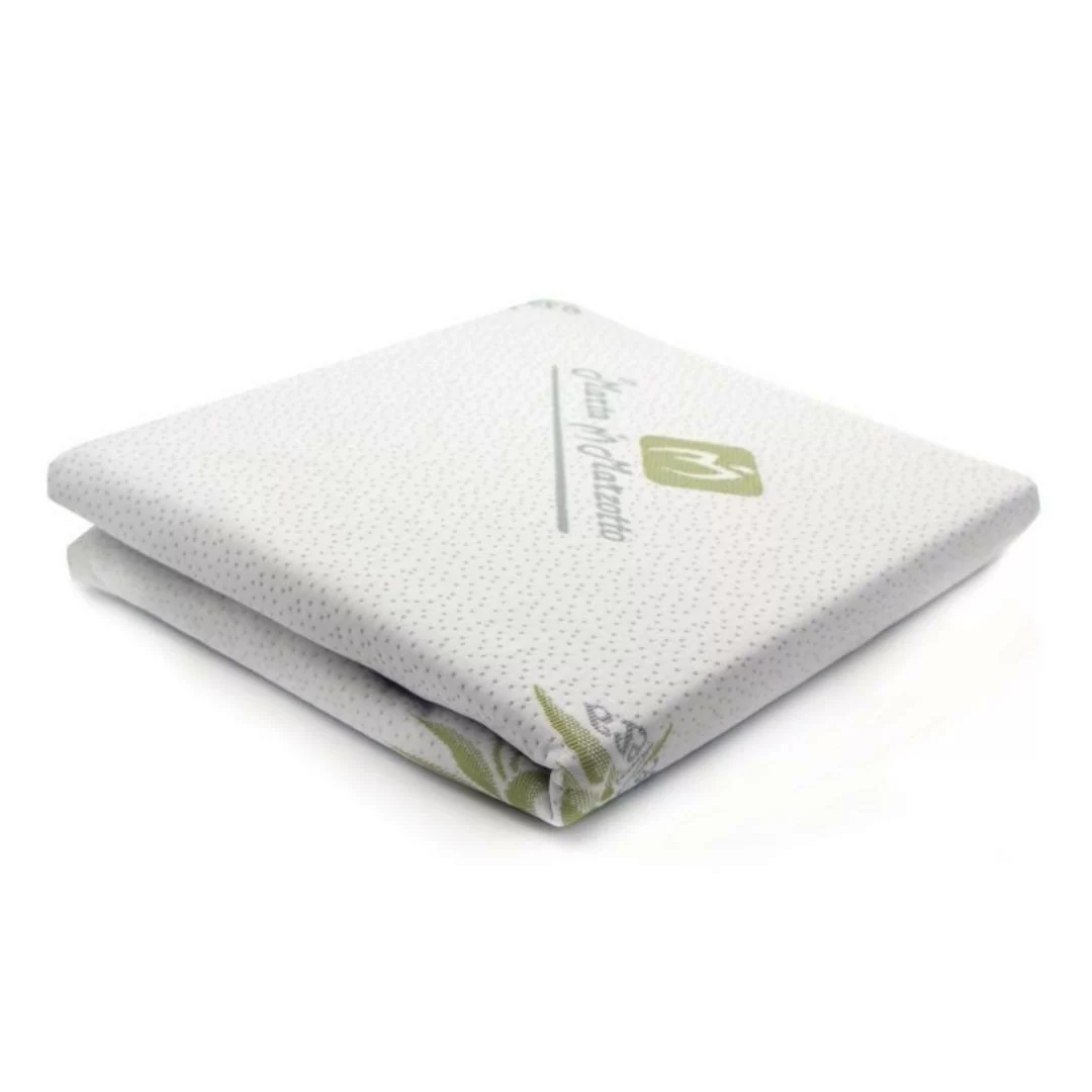 Aloe Vera a Lento Rilascio: Questo coprifodera è arricchito con Aloe Vera a lento rilascio. L'Aloe Vera è conosciuta per le sue proprietà idratanti e lenitive per la pelle. Questo coprimaterasso rilascia gradualmente Aloe Vera per un comfort duraturo.