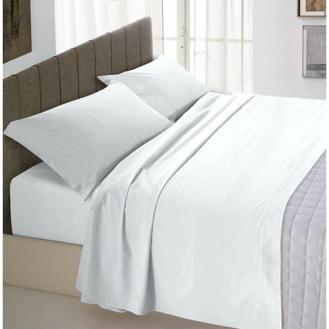 Lenzuolo Sopra LineaBlu art. Pratico Misto Cotone. Avvolgi il tuo letto con il comfort e l'eleganza del lenzuolo piano LineaBlu, un complemento essenziale per la tua stanza da letto. Realizzato con cura in pregiato misto cotone al 100%, questo lenzuolo offre una sensazione di morbidezza e freschezza che avvolge dolcemente il tuo sonno.