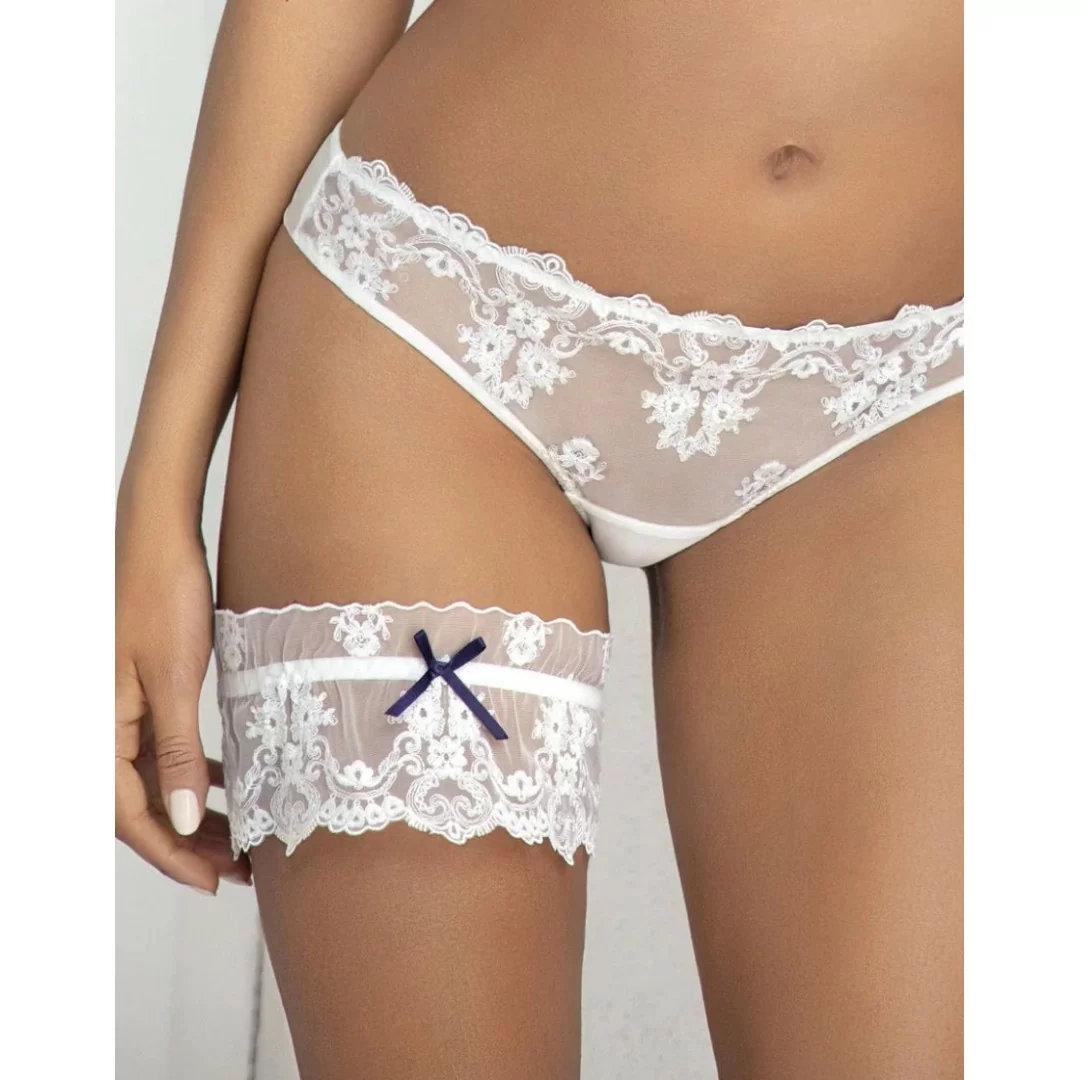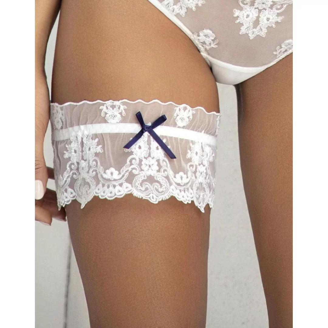 Giarrettiera Sposa SièLei art. 1950 in Tulle Ricamo Floreale Fiocco Blu