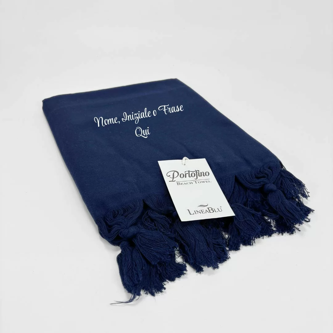 Telo da mare personalizzabile 90x160cm LineaBlu art. Portofino Beach Towel in 100% puro cotone tinta unita con frange
