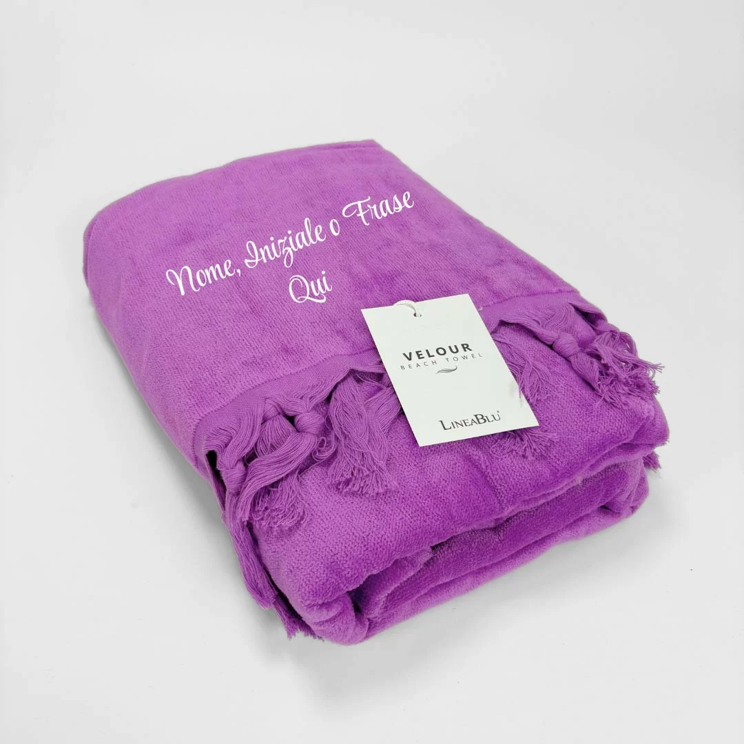 • Telo da mare 90x170cm LineaBlu art. Velour Beach Towel in microspugna mano velour in tinta unita con frange