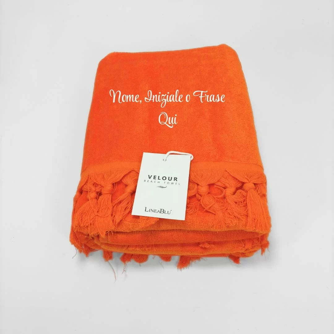 • Telo Mare Velour LineaBlu 90x170cm con frangia personalizzabile in microspugna tinta unita