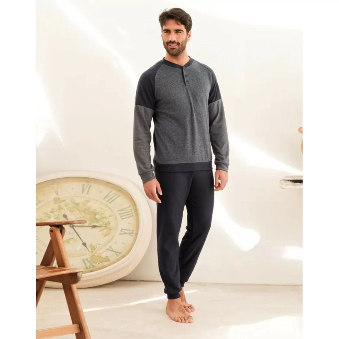 Disponibile nei colori Grigio e Blu, facilmente abbinabili e sempre attuali, questo pigiama è pensato per l’uomo che cerca un capo pratico e funzionale senza rinunciare al gusto estetico.