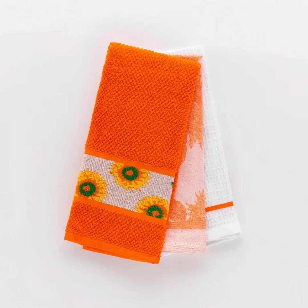 Canovacci Cucina Linea Oro art. Girasole Cotone Tris 45x65cm. Porta un tocco di colore e stile nella tua cucina con il nostro Set di 3 Canovacci da Cucina LineaOro, ispirato alla bellezza dei girasoli. Realizzati al 100% in cotone di alta qualità, questi canovacci uniscono praticità e design per arricchire l’ambiente con un tocco vivace e accogliente.
