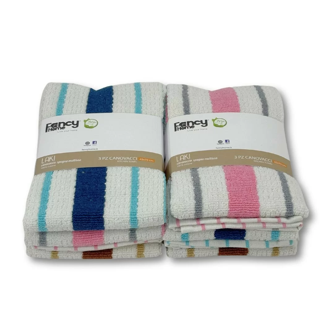 Canovacci Cucina Fancy Home art. Laki Tris Spugna. Porta nella tua cucina praticità e stile con il Set 3 Pezzi Canovacci in Spugna Multiuso Fancy Home art. Laki. Realizzati in 100% cotone di alta qualità, questi canovacci sono studiati per garantire la massima assorbenza e resistenza, diventando indispensabili alleati nelle attività quotidiane.
