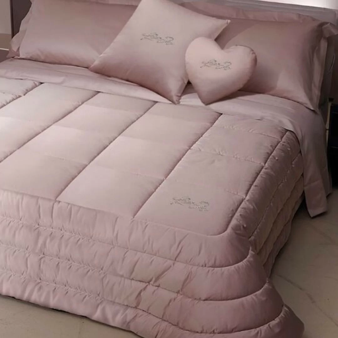 L'imbottitura è in fibra di poliestere da 300gr/m², offrendo un eccellente isolamento termico. Questo materiale, leggero ma caldo, assicura il massimo del comfort senza appesantire, rendendo la trapunta ideale per i mesi più freddi.